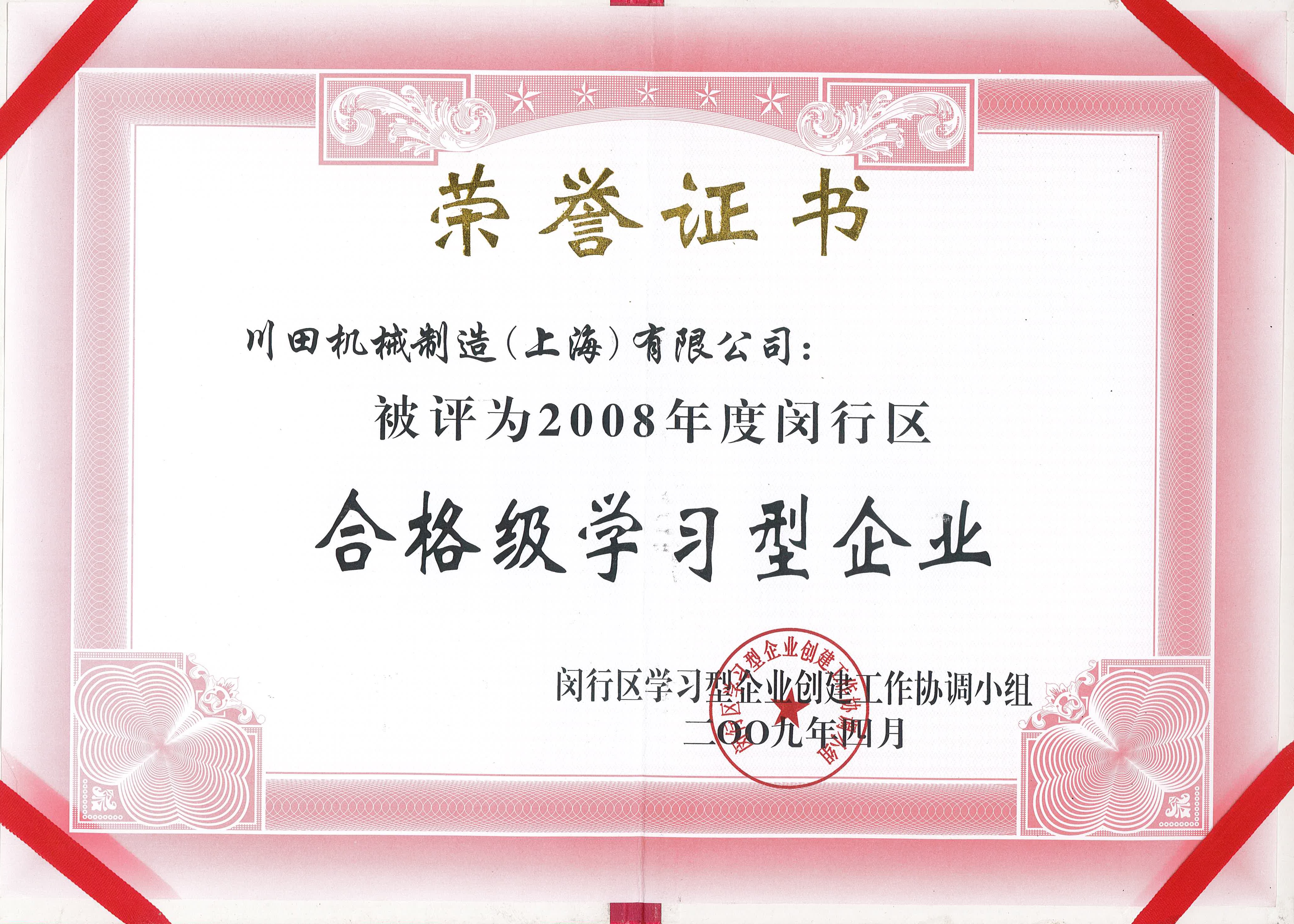 2008 閔行區(qū)和合格級學(xué)習(xí)型企業(yè)