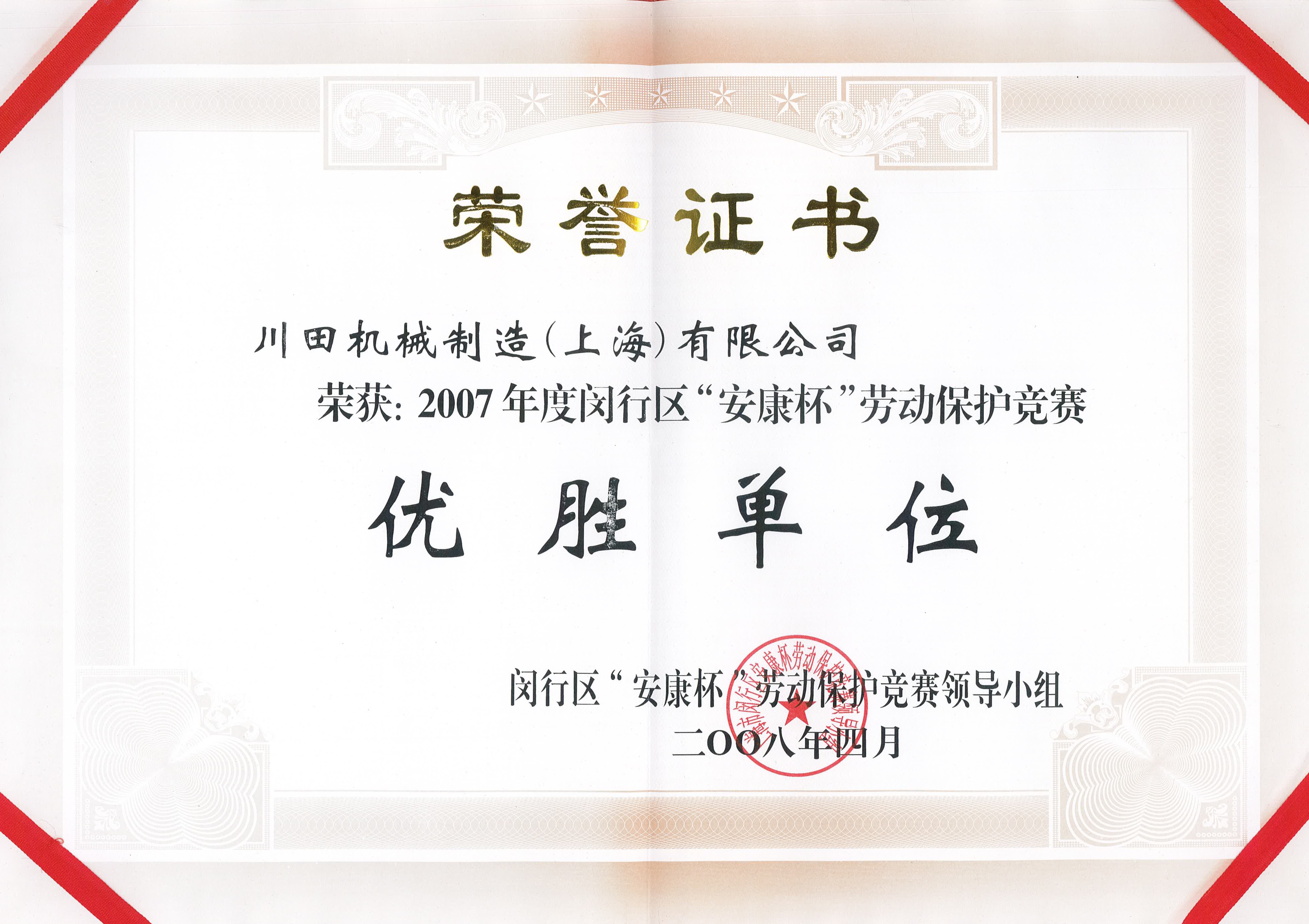 2007 閔行區(qū)安康杯勞動保護(hù)競賽優(yōu)勝單位