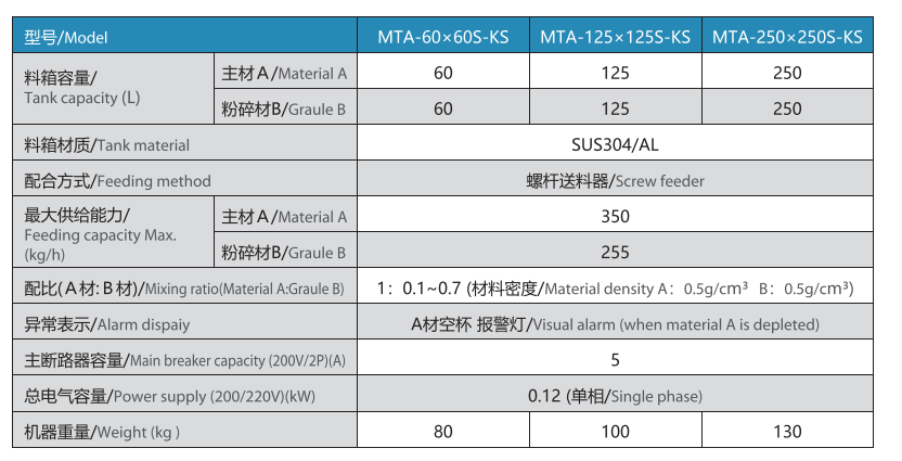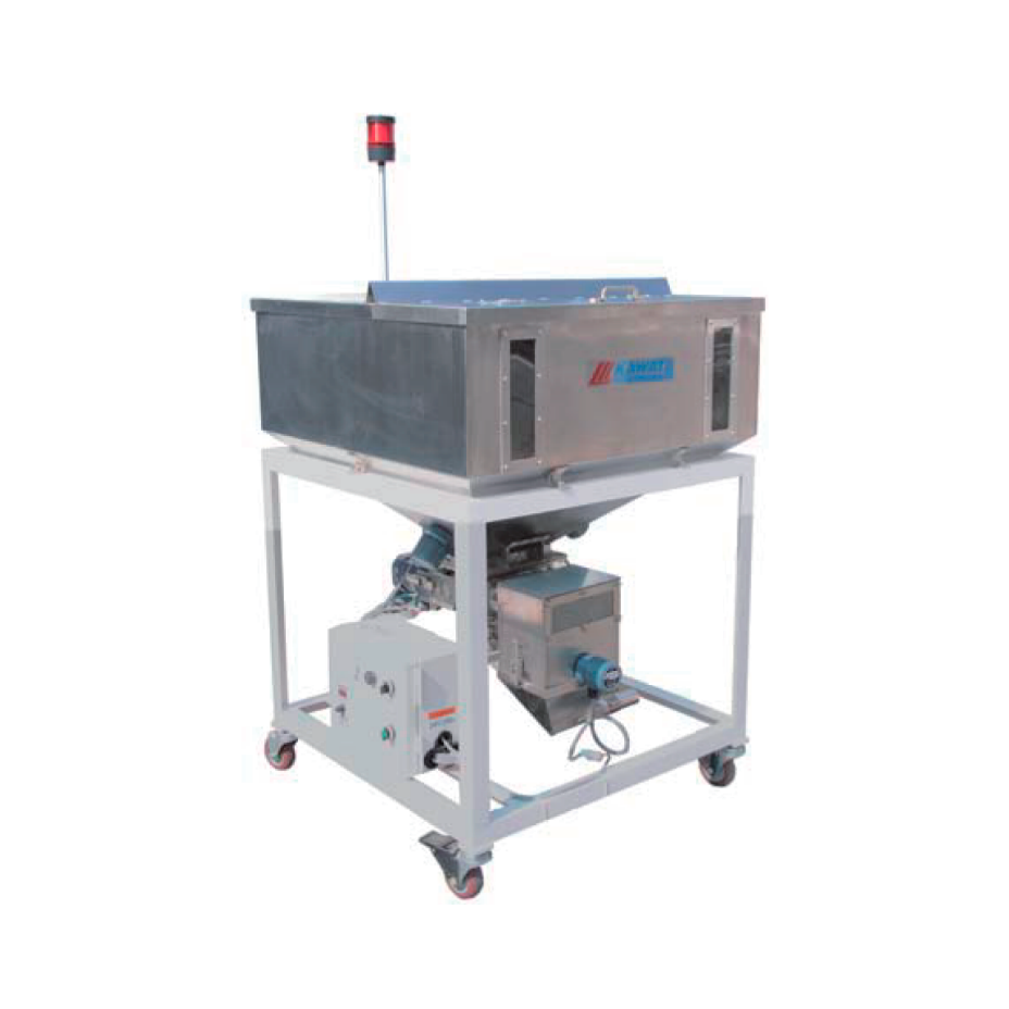 經濟型容量計量機川田的混合料箱能以給2種材料(主材與粉碎材)提供各種各樣的安定混合比率,是經濟型的機種